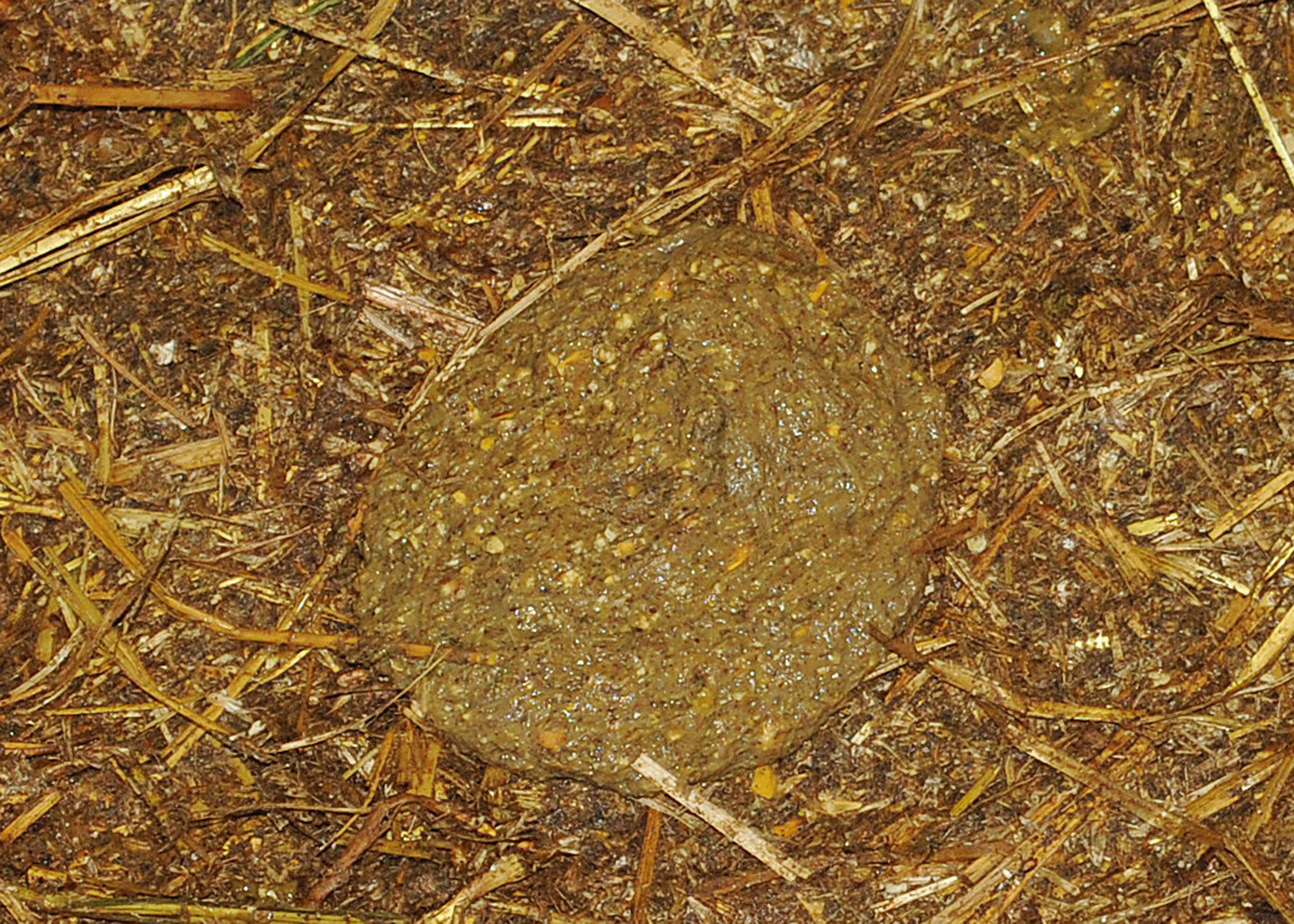 Manure within a group should be consistent in appearance, texture, and particle content. Whole kernels of corn in manure signal poor chewing and wasted feed.